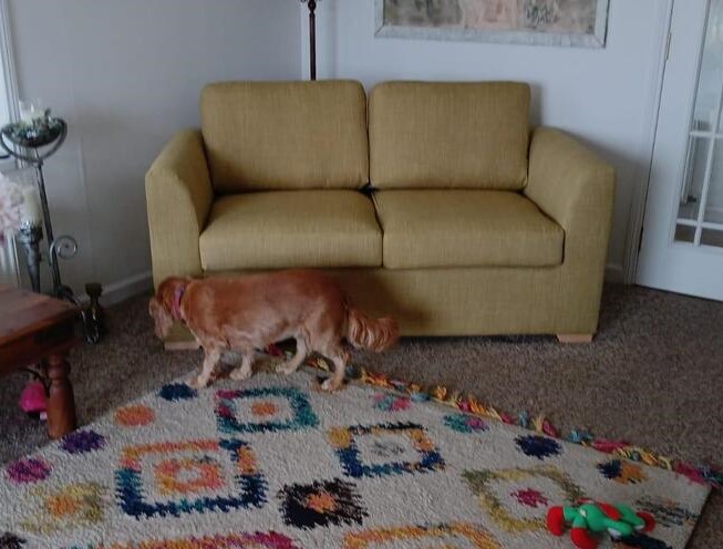 The folded out sofabed has the sleep area of a small double bed. The sofabed is perfect for occasional use and guests. The bed has a foam mattress on top of a trampoline base. This mimics the feeling and comfort of a fully sprung mattress.